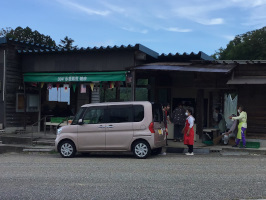 朝7時に家を出て、東原へ。森本から福光に向かう道を走り、県境手前の集落が東原です。地域おこし協力隊のOBと現役がお住まいです。朝市の手伝いに出ておられました。朝7時半開店とのことでしたが、7時過ぎからお客様もお越しになるようで、店を開けておられるようです。6月から12月、日曜の午前の営業です。地物野菜をはじめ、栗おこわ、シフォンケーキ、チーズケーキ、漬物などの加工品も販売されています。20年程前に、中山間地の集落の展望を描く活動で、何度かお邪魔したことがありましたが、当時から朝市は行われていて、継続されているのが素晴らしい。朝市に集っておられた中に、20年前の会合に参加していたという方もおられました。午後は、家人を伴いいしかわ総合スポーツセンターのプールで歩く。久しぶりのことで、継続できればと思う。 | ![]() 東原の朝市 |