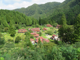 本日も朝9時前に山中温泉の旅館に行き、中央大学の学生諸君を連れて、東谷の一番奥にある大土へ。国際ワークキャンプの学生さんたちが稲刈りをされていました。集落を見下ろせる展望スポットまで案内し、本家の中を見せていただき、車座になって話をうかがう。その間に、日曜日に加賀に来る予定の専修大の学生さんからの依頼に対応。11時過ぎには大土を出て大聖寺へ。昼食をフェアレディに予約、ランチを全員でいただきました。午後は、八間道の能楽堂を見学に行き、瀬戸達さんから話していただきました。近くの交流センターさくらの中で涼んだ後、フゾンに再度案内。その間に、今度はかりぐらしの家で、依頼いただいていた資料を作成しメール送信。その後、山田町鍛治町界隈の学生さんたちを案内。本山茶舗に入ってみました。昔からほうじ茶を作るいい香りがしていましたが、棒茶もつくられているとのことで、買わせていただきました。スーパーで買い物をしてもらい、バーベキューを予約されたぶどう園まで学生諸君をお連れして、サポート終了。 | ![]() 大土集落 |