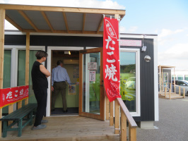 金沢市内でスタッフと合流し、能登に向かう。まずは能登事務所に寄り、先日の滞在の際に忘れたものをピックアップ。「季刊能登」が届いていたので、それの一部を持ち帰る。次に門前に移動し、手仕事屋で昼をいただき、スタッフが揃ったところで打合せ。ホームページとメニューブックを作り変える予定です。震災復興関係のお客様が多いので、メニューを変えておられますので、それにあわせた内容に修正されます。總持寺通りでは公費解体が一気に進んでおり、手仕事屋の斜め前の散髪屋さんや幸福さんも解体されていました。仮設商店街も小規模ですが、複数の場所に整備が進められています。星野さんの豆腐屋も、その一角に入れるようです。次に富来に寄り、仮設商店街や道の駅で買い物。賑わうためには、情報発信や外看板を分かりやすくする必要がありそうです。 | ![]() 富来の仮設商店街 |