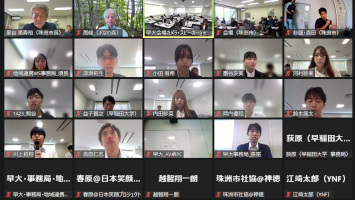 朝9時半から、早稲田大学の珠洲プロジェクトの最終報告会にオンライン参加。珠洲市長以下、珠洲の皆さんもオンラインで参加でした。先日の東京でのいしかわUIターン大相談会で、早稲田の学生さんからヒアリングを受けたので、お誘いいただきました。2つのグループからの発表があり、ぞれぞれ質疑応答の時間が設定されていましたので、最初は質問させていただき、次はチャットで質問を投げかけさせていただきました。今後も継続的に珠洲に関わっていただけそうなので、今後の活動に期待しています。11時半には終了、山代温泉の温泉ぐらしの家に滞在していた東大生を連れて金沢に移動、近江町市場までお送りして見送る。 | ![]() 早稲田大のオンライン報告会 |