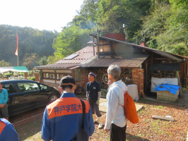 本日も朝6時前に家を出て能登に向かう。穴水のすしべんで朝食をいただき、能登事務所へ。昨日使った刈払機や鎌などを下ろし、本日のボランティア活動で使いそうなスコップなどを車に積む。9時前には、神戸学院大生の本日のボランティア活動場所のケロンの小さな村へ到着。オーナーの上乗さんの指導で、活動をさせていただきました。まずは、裏山の頂上エリアで、11月予定の桜植樹場所の準備作業を行う。日当たりのよい斜面での作業で気持ち良かったです。次にツリーハウス近くの森の中に置かれていた原木シイタケの榾木を並べ直す。休憩をはさみ、薪割作業を体験。マツの木を斧とハンマーで割る作業に取り組んでもらう。昼前に作業を終了し、薪窯で焼いたパンを購入。能登事務所で弁当を食べてもらいました。午後は、昨日ボランティアにお邪魔した家で障子紙をはがす作業を行い、夕方に終了。 | ![]() ケロンの小さな村で |