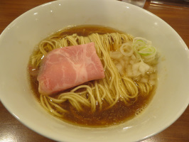 朝9時半ぐらいに金沢を出て鯖江へ。美川ICから北陸道に乗り、鯖江で下りて、11時前に到着。昨晩ご一緒した高校同期の息子さんが経営されているラーメン店・らぁ麺まほろば鯖江店(鯖江市東鯖江1-2-16)へ。開店前からお客さんが待っておられました。一番人気のメニューを券売機で購入。同期には昨晩車で送ってもらったのですが、落とし物をしたために、それをとりに参りましたが、おかげでラーメンをいただくことができました。細麺で腰があるラーメンで、トッピングの豚肉は柔らかでした。ネギと刻んだ玉ねぎも乗っていましたが、辛みがあってアクセントになっているようです。煮干しのスープを飲み干したいところでしたが、高齢者には少しだけ濃いようでした。帰りは8号線をひたすら走り、途中加賀の元気村に立ち寄りナシとリンゴを買って戻る。午後は家人とプールへ。 | ![]() まほろばのラーメン |