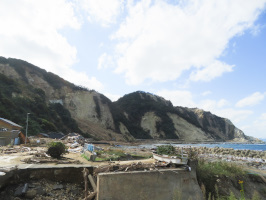 天気が良かったので、朝早くに金沢を出て能登へ。先端の狼煙を目指す。穴水のすしべんで昼食休憩。9時半には狼煙の道の駅に到着、営業されていたので買い物。トイレは仮設トイレが設置されています。まだ断水が続いており、豆腐とかの販売もなく、そばの提供もありません。次に、つばき展望台で写真撮影。トイレがきれいに清掃されていて使えます。ここは断水していないようだ。高屋を通り、馬緤で写真を撮るが、芸術祭の作品を望むことができました。海のそばの石の作品は健在であった。大谷地区に入る手前の道路はぬかるんでいて、信号機が設置され交互通行ですが、無事通過。車で行けるところまで行ってみるが、豪雨前と同じく仁江町で通行不能になっています。正面に見える山の崩落が広がり、軒並み崩れている印象です。帰りに、角花家の塩田、奥能登塩田村周辺を撮影。珠洲製塩は営業中で、塩を購入。大谷川の橋の上から写真を撮影し、さらに大谷小中学校の道路をはさんだ山の様子も撮影。広いエリアが崩れており、道路際の家には土砂が大量に流れ込んでいます。旧道を通り若山に抜けて、広域農道を柳田方向に行けるだけ行ってみるが、途中に何箇所も山から木と土砂が流れ出た痕跡があります。それらが若山川に流れ込み、下流で洪水になったことが想像されます。道の駅すずなりで買い物、すずなり食堂がいっぱいだったので、南下を続けるが食事処はどこもいっぱいで、能登町のおくのと市でもちを買い昼食とする。能登事務所経由で金沢に帰り着いたのは17時過ぎでした。 | ![]() 珠洲市仁江町の現状 ![]() 珠洲市大谷地区で |