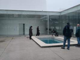 朝8時にスタッフと待ち合わせ、鶴来の白山青年の家へ。県の企画したインターンシップ参加学生7人を案内する。スタッフ4人、3台の車で金沢市内に移動し、まずは21世紀美術館へ。有料ゾーンも見学されることになったので、予約してもらい11時過ぎまで楽しんでもらう。我々はカフェでお茶を飲みながら待機。早目の昼食をということで、寿し食いねぇ!金沢寺地店へ。一番奥の小上がりは8人が座ることができました。好きに注文していただく。昼食後は、県立図書館に案内。ここでも自由に過ごしていただくが、2時半近くになったので、希望のところにお送りすることにして、金沢駅、市内の実家、小松駅、小松空港にお送りしてサポート終了。当方は、法務局に行き、印鑑証明を発行してもらい、イノクチモータースを書類とあわせて提出。 | ![]() 21世紀美術館で |
