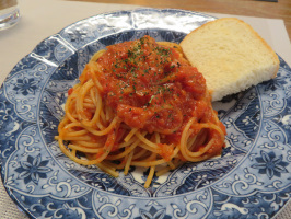 7時前には起きだして雪すかし。金沢でも、10センチ以上雪が積もっていました。近くの用水に少しずつ雪を捨てさせていただき、水がたまって流れが勢いよくなったところで、スコップで砕いて流します。駐車場から車を出しやすくしました。8時半前に金沢を出て加賀へ。市役所で移住促進に関わる定例のミーティング。協力隊の活動報告も行い、終了後、教育委員会のスタッフと打合せ。昼食をキミノスタジオ&カフェでいただきながら加賀のスタッフと今後のことについて話を。金沢に戻り、雪すかしの続きを30分程度行い、金石へ。協力隊のサポート会議を金石町家で行う。終了後、大野に移動し、こちらでも協力隊のサポート会議。雪が降り続いていたので、早々に切り上げて家に戻る。 | ![]() キミノカフェのパスタ |