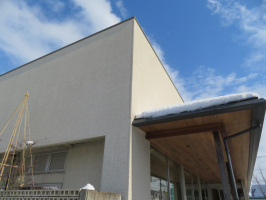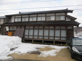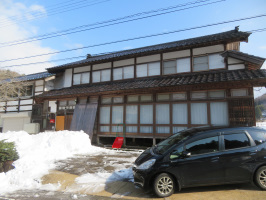 朝5時に金沢を出て能登へ。能登事務所で、まずは洗濯。2度繰り返し、順番に干す。その間に掃除機をかける。宇出津に出かけ、ガスの料金の口座引き落とし申請書類を提出。帰りに、上町の能海山市場で昼食などを買う。午後からは雨が上がったタイミングで何度か雪すかし。前回と同じように車が複数台止められるスペースを確保。雪を動かしていないエリアでは、雪山が高くなっていましたので、山の上に登り、雪を崩して、頂上部分をならしました。さすがに疲れたので、早めに金沢に戻る。 | ![]() 能登事務所の前面 |
