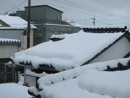 今朝も雪すかし。昨日よりも少ない積雪だったかもしれませんが、同じ要領で雪を動かす。近所の方が雪をきれいに動かしてくださったので、作業がしやすかったです。1時間ほどで終了。10時からは、オンラインでのミーティングに参加。次年度に向けての打合せでした。かつて能登にゼミ活動で来てくれていた学生さんが就職した職場の方々が繰り返し能登の支援に入っていただいていたようで有難い。次年度も継続的に活動いただけるとのことで、可能な限りお手伝いできればと思う。終了後、買い物に、近所のドラッグストアもスーパーも駐車場がきれいに除雪されていましたが、道路に雪が残っているので、出入りに苦労する。そこまでの余裕は無さそうですかね。夕方にも、少し雪すかし。 | ![]() 自宅から見える雪 |