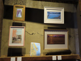 午前9時には、能美市和気の地域体験の家に行き、洗濯と掃除。10時からは会社のミーティングでしたが、能登方面から来るスタッフ一人が金沢で大雨の影響での渋滞に巻き込まれ到着せず。5人が揃ったところでミーティングを開始。サテライトキャンパス事業への対応を相談。次年度に向けての課題も明らかにできました。能登定住、加賀白山の広域の組織の今後のあり方についても関係者と相談していくことに。昼には終了し、早々に戻り、昼食は寿司屋に行く。午後4時からは金石で地域おこし協力隊のサポート会議。5時からは大野でも協力隊のサポート会議。終了後、大野町を描いた作品展示がスタートしたもろみ蔵を見学に。醤油ソフトもいただく。 | ![]() もろみ蔵での展示 |