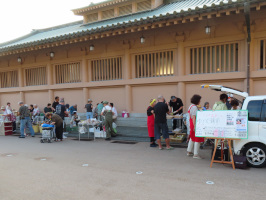 朝早くに起きていたので、山中温泉の「ゆざや朝市」で買い物をするべく加賀に行く。6時半前に着いたら、すでに多くのお客様と出店者たちとの交流が行われていました。お目当ての梅干を購入し、コーヒーをご馳走になり、ホットドッグとコロッケも頂戴しました。山代で朝食を食べ、元気村が開くのを待って買い物、金沢に戻る。白山イオンモールに直しを依頼していたパンツを取りに行き、買い物をして戻る。昼に素麺を食べてから能登に向かう。穴水のホームセンターでどんたくで買い物をして能登事務所へ。ホームセンターで蜂避け用のオニヤンマを見つけました。16時過ぎに到着、早めに夕食の準備をして来客を待つ。滞在している中央大生を交え3人で夕食。いろいろな話がうかがえて有意義だったのではないでしょうか。20時過ぎには終えて後片付け。神戸学院大の学生さんたちを待つが、結局22時近くに無事到着。夕食を食べ、風呂に入ってもらい、23時過ぎには寝る。 | ![]() ゆざや朝市 |