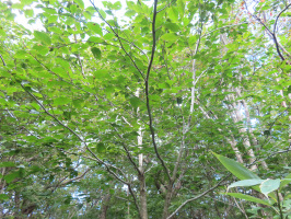 朝4時半ぐらいに金沢を出て能登へ。能登事務所で準備をして、北河内へ移動。いぼ地蔵前の駐車場に車をとめて、鉢伏山頂上を目指す。先日初めて行った橋が崩落している現場までは1時間もかからずに到達。川を歩いて渡り、そこから先の林道は初めて歩きましたが、調査に入られた方か、テープをつけていただいているので、ルート選定の目印になります。斜面崩落が起こり、滑り落ちてきた木が折り重なっている場所が何箇所かあり、それを越えるのが難儀でした。何度も休憩を入れながら、鉢伏山の頂上への入口に着いたのは11時過ぎ。頂上エリアに移植したブナを確認してまわり、移植したブナの近くで昼食を食べて、看板のところにおりてきたのが12時半。来た道を戻り、いぼ地蔵に戻ったのは14時半前でした。能登事務所に戻り、シャワーを浴びて、しばし横になる。16時からはオンラインでの移住相談に対応。11月に移住体験にお越しいただくことに。 | ![]() 最も成長している移植ブナ |