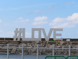 9時前に石川青年の家に行き、石川県のインターンシップ事業に参加されている学生さん2名を案内。まずは金沢21世紀美術館へ。有料エリアへの入場券を購入してもらい、プールの予約もしてもらい、無料ゾーンを見学いただく。10時には有料ゾーンに入ってもらい、当方はカフェで仕事。11時には見学から戻って来られたので、早めの昼食を寿し食いねぇ!寺地店でいただく。午後は、ヤマト糀パークを見学。アニメの聖地の一つである徳光海岸へ。蓮の空女学院スクールアイドルクラブの舞台となっています。「#LOVE」の看板を撮影してもらう。次に白山麓の綿ケ滝を見学。下までおりて撮影いただきました。最後は道の駅瀬女に案内。お宿の石川青年の家までお送りしてサポート終了。 | ![]() 徳光海岸の#LONE |