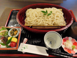 9時に橋場町のコンビニで待ち合わせ。福岡からやってきた学生さんを伴い加賀へ。まずは、東谷の今立で近藤さんの古民家ゆうなぎを拝見。お客様がチェックアウトされたところで、掃除や次のお客様のための準備をされていました。連日お客様がお越しのようで何よりです。集落を散策し、大土に移動。お子様連れのイベントを開催中でした。集落を歩き展望スポットまで上り、眼下に集落を撮影、昨日より明るい写真が撮れる。下におりてきたら、川遊びに誘われたのでついて行ってみた。途中から水に飛び込み満喫されているようでした。さすがに何も準備せずでしたので、石を動かして水の流れを変えて遊ぶ。サワガニがいたので、子どもたちにみてもらう。二枚田邸に入り、二枚田さんに挨拶だけして、荒谷に移動。和楽庵でそばをいただく。相変わらずきれいなおそばです。山中温泉では、あやとり橋、こおろぎ橋、栢野の大杉を紹介、大杉茶屋にも寄るが草団子は売切れでした。大聖寺では十万石まつりを見学、かき氷をいただく。奥谷の梨園では、梨の収穫を少しだけ手伝う。かりぐらしの家に案内し、滞在の準備をして、買い物のためにマルエーに案内。当方は金沢に戻る。 | ![]() 和楽庵のそば |