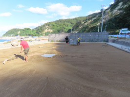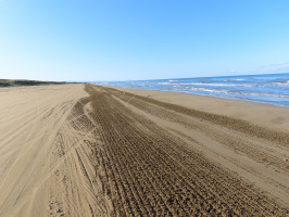 朝7時に能登事務所を出て、滞在していた大学生と金沢を目指す。のと里山海道もスムーズでしたので、柳田ICで下りて、千里浜を羽咋のスタート地点から宝達志水町の今浜まで走ってみた。天気も良くて気持ちのよい海でした。ちょうど砂浜をならす作業や漂着物などの片付けをされていました。金曜日にされるのであろうか。宝達志水町の暮らし体験の家でトイレ休憩。県庁には9時過ぎについたので、地域振興課でしばし待機。加賀で活動していた学生も到着して、3人でインターンシップ最後のプログラム参加に向かわれました。10時過ぎからは、課長を交えて打合せ。一旦自宅に戻り、昼を食べて着替えて加賀に向かう。加賀では、元気村で買い物をした後、不動産会社で契約書にサインと押印。小塩辻の梨園で買い物をして能美の地域体験の家に移動。税理士の先生と打合せ。隣では園地を削る作業が進んでいました。家に戻る途中の電気屋でファンヒーターを購入。家に戻り荷物を下した後、銀行に行く。さらに、ドラッグストア、業務スーパー、マルエーで買い物。 | ![]() きれいにされた千里浜 |