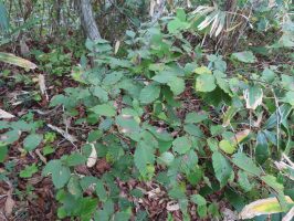 朝4時に金沢を出て能登へ。能登事務所には6時に到着。準備をして北河内のいぼ地蔵の駐車場へ。車をとめて、徒歩で鉢伏山を目指す。土砂崩れ、倒木が重なっている場所、橋が落ちている地点は歩いて川を渡り、3時間かけて、頂上エリアの下の林道に到着。一乗地区の共有林であるブナ林の法面でブナの幼木を探す。10本以上を見つけることができました。その後、頂上エリアにも登り、移植したブナの回りのササ類などを除伐する作業を行う。一番成長している移植ブナの周りにも、そこそこの大きさに育ったブナが何本あります。2時過ぎには下山を始めるが、駐車場に辿り着いたのは4時過ぎでした。現状では、登りで3時間、下りで2時間です。疲れが激しかったので、能登事務所に戻り、冷蔵庫の中に残っているもので夕食にして、シャワーを浴びて早々に寝る。 | ![]() 鉢伏山周辺で見つけたブナの幼木 |