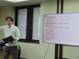 朝9時前にかりぐらしの家に行き、1階のエアコンやファンヒーターをつけて片づけ作業の準備。メンバーが揃ったところで、片付け作業を行う。事務スペースの入口側の棚に入っていた本をすべて移動させ、処分する資料や本を分別する。書庫スペースの本もいくらか分別、資料としてとってあったものも処分することに。玄関前の雑然としたものを一気に片づけて見よくする。11時過ぎには、早めの昼食をフェアレディでいただく。早い時間帯は常連の高齢者が3名お越しでした。午後1時半から「加賀市居住支援協議会ワークショップ」が市役所3階で行われたので、委員として参加。先進的に取り組まれている福井の活動内容の報告がわかりやすかったです。加賀市においても、まずは居住支援法人に名乗り上げていただき、具体的なサポート体制を明確にして、活動を始めることです。協議会を設立された意義がようやく分かりました。 | ![]() 加賀市居住支援協議会ワークショップで |