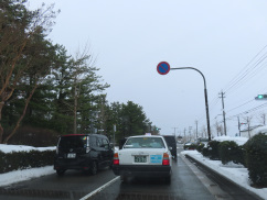 午前は晴れ間を見て買い物へ。午後はいしかわ総合スポーツセンターのプールで水中歩行。雪模様で一般のお客さんは少ない印象でしたが、ボクシングの大会があったようで、ロビーやスタジオには多くの人がいました。プールでも午後2時からクラブ活動があったようで、30名ほどの生徒さんたちが1,2レーンを使って水泳の練習をされていました。そのタイミングでプールから上がるが、雪はほとんど降らずでした。夜遅くに降り出した雪は本格的に積もりそうです。天気予報通りかな。 | ![]() 金沢の道路で |