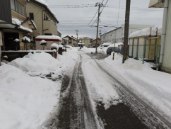 午前10時からオンラインで地域体験の相談。3月に能登へお越しいただく方向で検討いただくことに。学生さんですが、地域に関心を持っていただけることはありがたい。中央大学の活動に一緒に同行いただくと学ぶことも多いのではないかと思う。その後は雪かきの続きを行う。駐車場の雪を徐々に積み上げ、車の出入りがしやすいようにする。その成果を確認する意味も含め、車で買い物に。スーパーの駐車場も確保されていましたが、車の数が少なかった。午後も再度雪かき。雪が積もった際は、雨や雪が降っていなければ、雪かきを行うことが多い。明日のために、ゴミ置き場の雪を動かし、少し広げる。 | ![]() 車が通りやすくなった前面道路 |