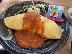 午前11時から宝達志水町のクチノトマーケットで移住者さんインタビュー。内海さんにお話をうかがう。地域おこし協力隊として昨年7月まで活動し、8月からは専業農家として独立した内海さん。愛知県での仕事を辞めて、新規就農を目指して移住して来られたのは2022年11月のこと。徐々にネットワークを広げ、譲り受けた畑の園主と出会い、経験を積んでこられました。イチジクだけでなく、お米の生産の手伝いやブルーベリー、花木の栽培にも取り組み始めておられます。インタビューの後、やわらぎオムライスをいただく。久しぶりですが、やさしい味です。終了後、暮らし体験の家の様子を確認して戻る。 | ![]() やわらぎオムライス |