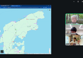 午後1時からオンラインでの相談。新しい大学の先生との面談でした。年度内に能登にお越しになる想定とのことで、人数が少ないので、能登事務所での滞在を提案。事前にフェイスブックでやり取りをさせていただいていたので、話はしやすかったです。ただし、wifiが二度つながらなくなりました。モデムなども再起動してやっとつながるようになりました。最近は、雷が多いせいか、不安定なことが多いです。その後、いしかわ総合スポーツセンターのプールで歩く。今年初めてですが、お客様が多かった。 | ![]() オンライン相談の画面 |
