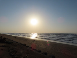 昼食を食べた後、加賀に向かう。移住体験者さんとおんせん図書館みかんで 待ち合わせたので、早めに行って、昨年から設けた(株)ぶなの森のコーナーに本を追加し整理。コーナー番号を裏表紙にシール貼り。きれいに並べて記録写真を撮影。ブナや林業関連の書籍を追加しました。約束の時間には移住体験者さんと合流し、宝達志水町へ。天気が良かったので千里浜に案内。波が高くて車で走行することはできませんでしたが、曲線になっている水平線がきれいに眺められました。暮らし体験の家にチェックインし、まずは近くのホテルウェルネス能登路の温泉に入ってもらう。その間に、灯油と浄水器のカートリッジを買いに行く。カートリッジは交換し、灯油は2台のファンヒーターに入れて、掃除機をかける。温泉から上がった旨の電話があったので、迎えに行き、なぎさ亭で夕食。コンビニで買い物をしてもらい戻る。 | ![]() 千里浜 |