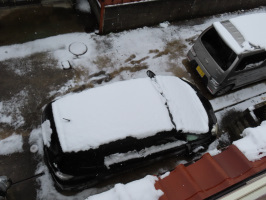 今年初めて雪が降る。昼間はそれほどの積雪ではなかったが、夜に積もりはじめた。どこにも出掛けず、家でごろごろ。昨日は、午後から年賀状を作成し、新金沢郵便局に出しに行くが、どこにも寄らず、家に戻ったので、大晦日から、ほとんど家にいる。食事も年末に用意した料理を繰り返し食べているので、昼食にはインスタントの焼きそばを作って食べてみた。違うテイストの食べ物が欲しくなるものです。 | ![]() 雪が降った駐車場 |