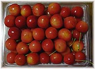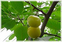| 7月3日(木) 黄色いサクランボ 長野の善光寺門前町を見て回る。そこからの帰り、須坂のフルーツロード沿いにある「荒井農園」(026-248-7744)でサクランボ狩りを楽しませていただく。積極的にサクランボ狩りを行っているわけではなく、出荷用の収穫をされている畑で、スタッフに教えていただきながら、楽しませていただきました。この園主の荒井武夫氏も、スタッフの方々も愛想のよい方々でした。いろんな種類のサクランボが植えてあって、味の比較もできます。ご主人いわく「サクランボは複数の種類を植えないといけない」とか。珍しかったのは黄色いサクランボでした。粒も大きく、甘い。名前は月山錦だったかな?。入園料500円で、収穫したサクランボ100g250円でした。お薦めの農場です。 | ![]() 黄色いサクランボ |