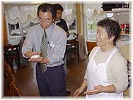 | 9月9日(木) 白山麓にそば屋 鳥越村のにわか工房と唐変木に行く。にわか工房のまわりにはたくさんのそば畑があり、多くの方が写真撮影にこられていました。おかげで、にわか工房も忙しそうです。来週には高台の広い部分も咲きそうということでした。唐変木はそば打ちの指導もされているそば屋さん。にわか工房のスタッフも教えていただいています。最近はプロを目指す方だけを教えていますが、4、5人は生徒さんが習いに来ていらっしゃるようだ。平日の昼でしたがお客さんは多い。きれいなそばを出されます。ご主人の橋本さんの夢は白山麓をそばのメッカにすること。すでに20軒近くのそば屋がありますが、もっと増やしたい。集積効果は高まっているようで、平日でもそばを食べにいらっしゃるお客様はたくさん見られます。目指すは兵庫県の出石町です。 | ![]() そば畑とにわか工房 |