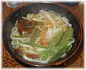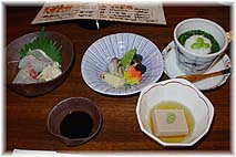 | 9月11日(土) 寄せ豆腐 門前の手仕事屋までドライブ。運転免許を昨日とってきた息子の練習のために一気に遠いところまでドライブしてみた。高速や能登有料にものり、都心の混雑した道路から、能登の山道、海沿いの道と一通りの道路を走ってみると学ぶことも多いはず。免許取得の最初に集中して運転すると身に付くであろう、ということで5時間近くのドライブは助手席に座っているだけでも相当に疲れた。手仕事屋ではもりそばと寄せ豆腐をいただく。経営者の星野さんの豆腐工房で豆乳や固まりかけの豆腐をいただいたことはありましたが、寄せ豆腐は初めて。豆乳の甘味が強く、固まりかけの豆腐が豆乳の中にただよっている感じ。 | ![]() 寄せ豆腐 |