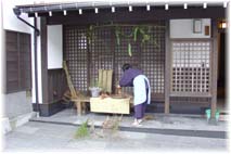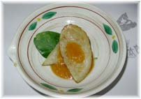 | 10月14日(木) 上山温泉へ 全国街道交流会議のために山形県の上山温泉に行く。小松から羽田経由で山形へ。2度目の上山です。空港には事務局の石井さんが迎えにきて下さいました。おかげで、わがままが言えました。昼食に名物の冷やしラーメンを食べようとラーメン屋に連れて行ってもらいましたが、残念ながら9月いっぱいで終わっていました。仕方がないのでラーメンをいただく。冷やしラーメンは普通のラーメンのような外観ですが、スープが冷たいのです。上山ではおすすめのメニューの一つです。その後、名月荘に案内いただきく。上山の中では最も質のよい旅館です。2階建てで宿泊室はすべて1階にあり、お部屋に温泉がついています。山裾の緑豊かなところでゆったりとした時間を過ごすことが出来ます。売店に置いてあるものも、展示の仕方も違います。別棟の談話室では毎月コンサートも開かれます。エントランスで薪をたいているとことも、懐かしい雰囲気を演出しています。スタッフの接客もしっかりしており、一度は泊まってみたい宿です。プレイベントの特別講演「イザベラ・バードの歩いた世界」をうかがった後、居酒屋「高太郎」で食事をいただく。あけびの皮をご馳走になりました。 | ![]() 名月荘のエントランス ![]() あけびの皮の料理 |