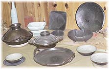 | 10月27日(水) 独歩炎 穴水と能登島にお邪魔した。能登島では農業を行っている高さんに久し振りにお話をうかがう。数年前に林農産で会ったことがあるだけですが、しっかり農業で生計を立てておられます。野菜をつくり、地元のスーパーなどでもコーナーを作ってもらい、仲間達と通年で野菜を販売しているとのこと。ネギや大根、イモ、カボチャ、キャベツなど、いろんなものを生産することが農業の基本です。その後、能登島商工会で教えていただいた独歩炎の藤井博文さん(能登島町曲10-3-1 TEL0767-84-1197)を訪ねた。藤井さんも高さんの話を聞いて感心したと言っておられました。地域で活躍している人はどこかでつながっているものです。藤井さんは工業デザイナーを辞めた後、瀬戸で修行し、中学卒業までいた能登島に戻ってこられたとのこと。工房は水族館の近くの集落に中にありますから、辿り着くのは大変かもしれませんが、一見の価値はあります。東京などでの個展中心に活動されていますが、地元では七尾のギャラリー葦に作品があります。奥様は青白磁を作られています。 | ![]() 自宅前の高さん ![]() 独歩炎の作品 |