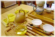 | 10月10日(日)坂のまちアートin八尾2 今日は事務所の八尾出身のスタッフを連れて八尾へ。駅前の作品を見て回った後、商工会の横に車を止め、旧町のいくつかの会場をぶらぶら。昼過ぎには宿泊予定の北吉別館(ビジネスホテル)にチェックインし、車もおいて、桂樹舎までのルート上にある会場を拝見。初めて入る家もあり、いろんな楽しみ方をされていることがよく分かりました。木をふんだんに使った贅沢な家が多い。、いったん、上新町に上がり、おかめでラーメンをいただき昼食とする。水上の味噌屋さんで冷たい甘酒、おおつか茶舗で中国茶をいただく。散策の途中に休憩処、お茶ができるところがいくつもあると助かります。そのようなお客のニーズを感じ取っている方が多いのか、喫茶コーナーが増えていましたね。着実に進歩しています。井波町の方々が視察にお見えでした。夜は福島地区でのまちづくりフォーラム。問題は住民の皆さん、商店の皆さんの参画意識が高まること、自らが新たなことに取り組む気運を醸成することがポイントです。 | ![]() 月をイメージした水上味噌店での作品展示 ![]() おおつか茶舗の中国茶 |
