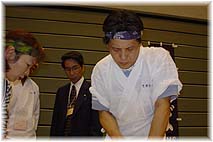 | 10月15日(金) 全国街道交流会議 全国街道交流会議の本番。午前10時から楽屋で延々打ち合わせ。分科会が始まるまでに十分議論ができました。だいたい、事前の打ち合わせしたことの一部を語ることになるものです。基調鼎談と分科会、そして交流会と続く。分科会は参加者の方からはほめていただきましたが、消化不良でしたかね。気仙沼でスローフードに取り組んでいる菅原さんと、鰤街道に取り組む高山の片岡さん、会津で干物問屋の歴史を活かし「渋川問屋」という名前のレストランを営む渋川さんというメンバーでした。素材の食物を旅をさせないで、人に旅をさせることをめざすスローフードと、旅をする鰤やたら、にしんなどを比較して見えてくるものを明らかにできると良かったのですが・・・。人を旅させることはよい、伝統的な技で加工した食べ物も新鮮な素材も活かして、美味しいものを味わえる地域にしていただきたいということ。さらにそれらが連携して、地域を旅する楽しみの相乗効果を発揮してゆくことが大切です。交流会ではラフランスを皮ごと食べさせていただきましたし、最後に手打ちそばを食べて満足しました。旅館に帰ってからの懇親会からが長かった。3次会までおつきあいして、部屋に戻ったのは2時過ぎでした。 | ![]() 事務局の面々 ![]() 交流会でそばを打つ |