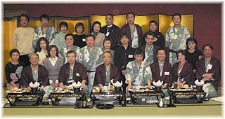 | 3月12日(土) 同期会 葬儀の後、後片付けをして香典等の集計をした後、山代温泉の白山菖蒲亭(社長が同級生)であった高校の同期会に出かけた。うれしかったのは当時の先生方が5名も参加されていたこと。物理の矢崎先生、体育の上田先生、英語の西村先生、数学の川島先生、社会の小橋先生。当時、新任で来られた川島先生は門前高校の校長に、小橋先生は七尾高校の教頭とのこと。他の先生方は退職されています。先生方とお話をしているだけで時間が過ぎてしまいました。30年の経過は立場を大きく変えているが、懐かしい話だけでなく、これからに向けての話ができることも大切ですね。 | ![]() 同期会で記念撮影 |