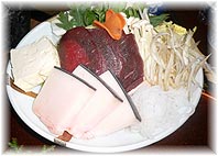 | 3月25日(金) 新しい事業を 能都町商工会で今年度最後のミーティング。昼はかね八でくじらをメインにした食談。やはり、地元の人達の体験に基づいた話しは面白い。合併した内浦、柳田の話しも聞けた。今後の展開として、能登町内を巡回する食談が継続的に行なわれることを期待したい。内浦ではイカや海草料理、柳田ではきのこや山菜、そして、鰻料理など、特長のあるものが楽しめそうです。せいぜい10〜15名程度で密度の濃いお話ができるとよい。夜のミーティングでは、商業活性化のための事業について提案、議論が盛り上がる。観光やUIターンにつながるような事業が可能です。新たな事業展開を期待したい。激しく雪の降り続く中、おそるおそる車を運転しながら帰る。ひどく疲れた能登路でした。 | ![]() くじらのすき焼の食材 |