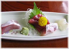 | 4月15日(金) 港町の魅力 まんなか市があった能登町の宇出津に行く。「あたか」(TEL 0768-62-0517)さんという役場のそばの料理屋でお話をうかがうが、地物へのこだわりは強い。まぐろ以外は総べて地物とのことであった。まぐろもたまに地元であがるので、それを使うこともある。近くの漁港であるセリ(朝7時と午後3時、土曜日はない)にはすべて顔を出し、素材を選ぶ。予約いただければ、希望のものを仕入れて出すことも十分可能だ。ふらっと来られたお客さんにも、試していただきやすいように、「刺身定食1500円」や「コース料理3000円から」の表示をお願いする。最近は仕出しの仕事がある場合も昼は営業しているとのことです。港町で美味しい魚が食べたい時は、ここで試していただくとよい。新鮮な魚が食べられる店が多い事、そして、土産に新鮮な魚が買える紙子鮮魚店のような魚屋が多い事も大きな魅力だ。 | ![]() あたかの刺身 |