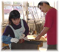 | 4月28日(木) 国の公募事業 経済産業省の公募事業に申請書を出すための手伝いが完了した。サービス産業の創出を促進するため、その 初期段階の経費を助成するという事業である。申請書を一通り作ってみて感じたことは、このような作業を通じて、事業の具体的イメージが徐々に明確になるということである。現状認識からスタートし、課題を絞り込み、その解決策を推進するためのコンセプトを設定し、細部を描いてゆく。コンセプトとディテールの往復運動の中で、はっきりしてくることも多い。次に必要なことは実験的な試みを重ねていくことである。城端や南砺地域、能登、白山麓等でお手伝いしてきた体験メニューの実験も本格的な事業化に向けた新たな取組みが必要である。 | ![]() 吹きガラス体験(能登島) |