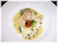 | 6月13日(月) 薪の音 城端の山本さんが新たに始める里山の宿「薪の音」のテスト営業に参加。一通りのお食事をいただき、可能な限り飲物も試す。動かしてみて始めて気付くことも多く、問題点のチェックが出来たのではないか。3室しかない部屋に全て泊まってみて、初めて分ることもあったりします。何事も体験してみないといけません。周囲に麦畑が色付き、独特の景観を眺めながら時を過ごす。地域の素材を活かした料理を楽しむことがメインとなるであろう。15日からお食事の営業開始、22日から宿泊も営業の予定です。今後の活躍に期待していよう。 | ![]() 活平目と帆立貝の料理 |