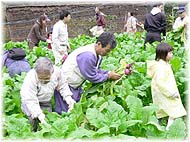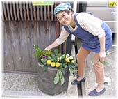 | 10月30日(日) 赤かぶの収穫体験 五箇山の合掌の里であった赤かぶの収穫体験に参加。8月28日に種を蒔いた赤かぶが大きく育っていました。関係者用の1畝を大勢で収穫したので、20個弱を収穫させていただきました。正式なオーナーの皆さんは、相当な数になったはず。グループでの契約が望ましい広さかもしれません。合掌造りの舘を背景に、赤かぶを抱えた姿は、五箇山らしい。手打ちそばや染め物体験、わら細工体験、さらに民謡披露もあり、賑やかな合掌の里でした。サービス精神が旺盛な五箇山の皆さんです。その後、氷見の永芳閣にお邪魔して、女将と1月の事業について相談。女将は率直で魅力的な方です。 | ![]() 赤かぶの収穫体験 |