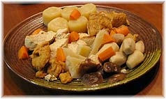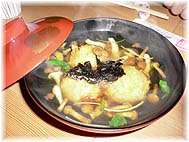 | 11月23日(水) 能登自然文化大学 門前のまんだら村であった地域づくり円陣の分科会に参加。主催はまんだら塾。担当コーディネーターということになっていたので出かける。手仕事屋に11時すぎには到着し、そばをいただく。星野さんと打ち合わせの後、まんだら村へ。金沢大学の中村浩二教授の基調講演の後、安田さんから能登自然文化大学の構想説明がある。具体的な事業展開をいかに進めるか、その手順、内容を明確にしていく必要がある。基本フレームは難しくないので、早めに実現化を図っていただきたいものだ。その際に重要なことは、能登で人が暮らし続けられるような仕事を増やしていくことだ。地域の文化はある程度の人々がいてこそ、継承・深化されていくものです。自然は人がいなくなれば、そのような生態系に変化していくだけである。自然に高い価値を認める人がいなくなっても、「自然」は厳然と存在し続けるであろう。すでに多くの種が消滅してしまっても、地球は回っているように。 | ![]() 懇親会での煮物 |