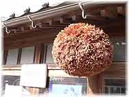 | 11月18日(金) 持続可能な地域づくり 能都町商工会で打ち合わせ。商工会の大黒さんと松波の大江山醸造元の松波酒造にお邪魔する。若女将の金七聖子さんは元気のよいお嬢さんだ。女将さんも明るく社交的な方です。酒蔵見学もさせていただける貴重な酒蔵です。店の隣の酒蔵の前に駐車場もあります。午後は小牧台で商工会連合会の「商業・まちづくりセミナー」で講演でしたので、近くの蕎麦処くきでもりそばをいただいてから、会場へ。くきは民家を改造した店ですが、薪ストーブのある囲炉裏の側が心地よい。「持続可能な地域づくり」をテーマに講演させていただくが、具体的な地域商業の方向性を提案、多くの方々にご理解いただけたはずです。生活サポート、観光商業、ネット販売が大きな柱です。田鶴浜の池田哲三さんや鳥越の村修一さんも出席して下さっていました。 | ![]() 松波酒造の杉玉 |