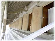 | 11月13日(日) 神在祭 大社に再び行き、神在祭が行われている出雲大社を見学。本殿の庭に入ることが出来、竜神にお参りしました。かわらけでお神酒をいただき、米粒もいただく。八百万の神々のための宿舎の戸が開けられ、お参りできます。本殿の回りを一周し、多くの神々にお参りを続け、財布の小銭がなくなりました。正月に続いて、参拝者も多いようで、いずこも賑わっています。昼は、地元の人々が行く裏通りのお好み焼き屋さんでやきそばをいただく。さらに、田中屋でそばぜんざいをご馳走に。神迎えの道も再度ぶらぶらして、高田屋と俵屋本舗でお菓子を購入。神迎えの道でのスタンプラリーも参加者が多いようで、何よりです。今後は、家や店の奥にまでお客さんを引き入れるような企画を期待したいものです。 | ![]() 神々の宿舎 |