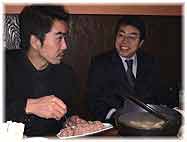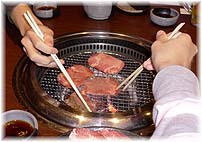 | 12月30日(金) ヤンバン 今日は朝から個人の年賀状を書く。そして、出来上がったのが午後で、それから郵便局に投函に行き、買い物へ。どこも混雑している。駐車場探しに苦労することが多い。夕食は、近くのヤンバンという焼肉屋へ。5時に予約を入れて、6時には帰るという効率のよいお客です。いつも同じようなものを注文し、一気に食べる。事務所のデザイナーの久島さんもご家族で来店。この辺りの人達が集まりやすい店ですね。 | ![]() ヤンバンでタン塩を焼く |