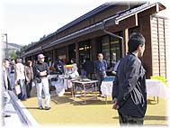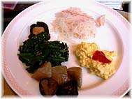 | 5月14日(日) バイキング 朝7時過ぎに温泉につかる。露天風呂にも入ったが、雨があがって気持ちよい。その後、バイキング形式の朝食をいただく。林さん、納谷さんと一緒に、ゆっくりと食事を楽しむ。昨晩の「酔談の宴」同様、バイキング形式なので、好みのものだけをいただくことが可能だ。その場で焼いているパンも食べてみたが、温かいので美味しい。温泉旅館の朝ものんびりできるとよい。せき立てられるような動きはほめたものではない。お客の立場に立ったサービスの仕組みが必要なことは言い尽くされているように思うが、現実は道遠しである。 | ![]() 朝のバイキング |