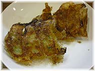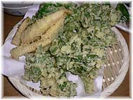 | 5月8日(月) だべり屋こなる 食彩館せせらぎの開業に関わった人たちとの打ち上げがあった。高尾台にある「だべり屋こなる」(金沢し市高尾台1-56 TEL 076-298-3099 11:30〜14:00、18:00〜24:00、木曜定休)が会場で、準備のために活躍してくださった沢田さんのお嬢さんが経営している店だ。山で調達できる素材を使った料理も出てくるようだが、今回は猪肉を使ったなべや、猪肉の焼いたもの、山菜の天ぷらんなど、それらしいものが多かった。鮎も季節には出てくるようだ。それらの素材も沢田さんが供給しているようだ。店はシンプルで若者向きにできているが、家族連れもきていた。みなさんのおかげで、無事開業できましたし、上々のすべりだしです。商品管理体制や情報提供をしっかりすることで、魅力を高めていくことです。 | ![]() 山菜の天ぷら |