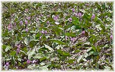 | 5月5日(金) カタクリ 朝から城端曳山祭の山を組み立てるところから拝見。全ての山が善徳寺の前に揃い、巡行にスタートするところも見学する。その後、昼食を兼ねて五箇山に行き、下梨の庄九郎でそばをいただく。さらに、菅沼集落の上の駐車場に車を止め、斜面を上がって、カタクリの群生地を探しに行く。合掌造りのためのカヤ場にはカタクリが群生しているところが多い。これからの株も多かったが、すでに斜面一面にカタクリの花が広がっていました。五箇山インターから高速に乗り福光インターで下りて城端にもどり、曳山祭を見学する。出丸で山をユーターンさせた後、出丸の上で、提灯山に飾り付け、暗くなってから、あかりを入れて最後の巡行が行われる。地元の人達も沢山でてきて、大勢のお客さんです。 | ![]() カタクリの群生 |