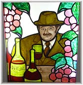 | 6月24日(土) 宮口とし廸教授 午後に富山の宮口教授の家にお邪魔した。10月に石川にお越しいただくための打ち合わせに行った。市内の喫茶店で、金沢青年会議所の神さんと宮口教授、奥様を交えて打ち合わせを行う。その後、ご自宅にもお邪魔して、文書に印鑑をいただく。ご自宅は高山線の線路沿いにあります。細入村で生まれ育ったためでしょうか、高山線への思い入れが強いようです。ご自宅の玄関には奥様の作られたステンドグラスの作品が多く展示してあったが、教授を描いた作品は一見の価値があります。ワイン好きなことがよく分り、風貌も似ていて雰囲気が良く出ています。奥様も率直な物言いをされる魅力的な方です。 | ![]() ステンドグラスの作品 |