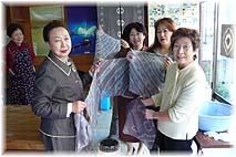 | 12月5日(火) 環境浄化 奥能登の商工会女性部の研修として片山津で取り組まれている水の浄化活動を視察に行く。柴山潟の水の浄化を促進するために貝を入れたり、葦を増やしたりもしてきています。さらに、総湯の斜向かいにある公園では潟の水を引き入れて浄化する実験も進めています。2日ほどできれいになるとのことです。池の中にはめだかも泳いでいたりして楽しめる場になっています。潟の水の総量に比べるとささやかではありますが、少しずつでもきれいにして潟に返すという活動が継続されることで、徐々に住民の意識も高まり、きれいな環境づくりが進むことが期待できます。最後に、泥染めの体験もさせていただいたが、湖底に沈んでいるどろから、紫色かかった染め物ができることが不思議であった。貴重な体験をさせていただきました。 | ![]() 泥で染める「晶子染め」 |