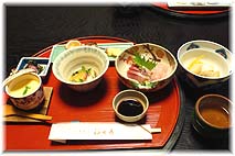 | 12月15日(金) 新たな出会い 出雲での3日目。最初に、焼酎を作っている工場に見学に行き、奥様と懇談。ボトリングマシンは金沢の渋谷工業のものが入っていました。さつまいもが特産品なので、いも焼酎とそば焼酎を作っておられます。そばは出雲そばのイメージからですね。その後、オロチそば「たばら」でしじみ汁を御馳走になる。昼は福田屋で出雲ホテル連絡協議会の田邊会長と会食。出雲でなければできない事業について提案させていただく。提案はいたって単純なことで、神在月に、出雲でマレビトを集めた事業を継続的に行うというもの。地域で活躍する人々の交流会を毎年できないか。毎年、出雲にお邪魔しているので、私だけでなく、もっといろんな方々にお越しいただきたいものです。 | ![]() 福田屋のお昼 |