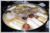 | 12月1日(金) みふく 主計町のみふくで鍋をいただく。スタッフの送別会があった。みふくの鍋は、特製みそとしょうががたっぷり入っているところが特徴。かきが基本であるが、かきが食べられないメンバーがいたので、肉鍋につきあう。ここの鍋は作るのは接待さんがしてくれるが、取り分けるのはお客が勝手にしてもよい。そこが同じ主計町の「太郎」さんとのちがいです。 | ![]() みふくの鍋 |