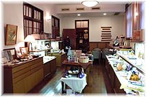 | 12月7日(木) じょうはな織館 久しぶりに城端に行く。じょうはな織館で、最近の状況をうかがう。1階のショップはレイアウトや商品も変化しており、なんとなく楽しい雰囲気になっていた。奥の喫茶コーナーには美術的な作品が展示されています。ギャラリースペースには城端の織物の歴史を紹介したパネルがかかっています。2階の体験工房では、今日も団体の体験が入っているとのこと。安定的に顧客を開発するためには、もっと情報発信を図ってほしいものです。体験参加者のコメントをホームページでも紹介していくとか。地域の情報を頻繁に発信する人が増えて欲しいものです。 | ![]() じょうはな織館の内部 |